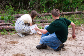 Fred's hive is the one in the corner of the picture and Caleb's is the one in the middle. The blocks on the other side of Caleb's hive is where Jared's hive used to be.... but it is sick and has been moved. Jared is praying over his hive right now.... it looks like we might lose it.Caleb with his favorite "chick" Rufusita. I know it's a crazy name and there's a long story to go with it. He was feeding her the weeds that he pulled out of the garden playing instead of working with the rest of us.